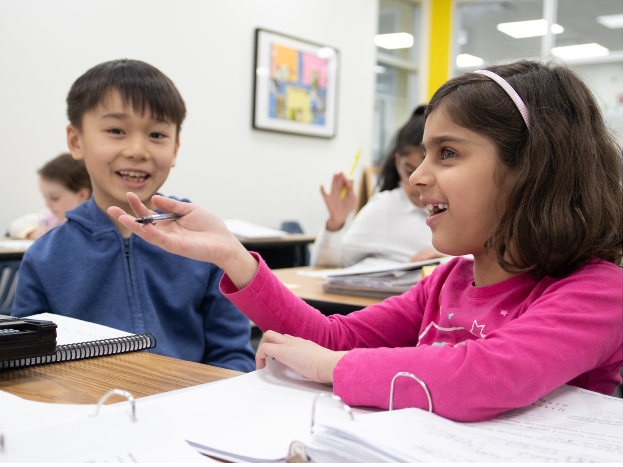 The Grade 2 curriculum introduces many mathematical concepts, and the weekly 1.5-hour class is packed with new learning each week. By the end of Grade 2, students can add, multiply, divide, as well as work with integers up to 2-digit by 1-digit calculations. Through drills, students work cooperatively to reach a class goal. They continue to master regrouping numbers to multiples of tens and hundreds, are introduced to primes, composites, special numbers, and they learn to list factors. Later in the year, the grade 2 students locate rationals on a number line, add and subtract positive and negative rationals, and gain a deep understanding of how numbers relate to each other. In addition our grade 2 students learn to convert numbers from base 10 to other bases with a focus on learning place value. Grade 2 students write tests throughout the year, as well as the Spirit of Math International Contest during class time, with an exam at the end of the year. The overall curriculum is fast-paced and engaging to our Grade 2 students.